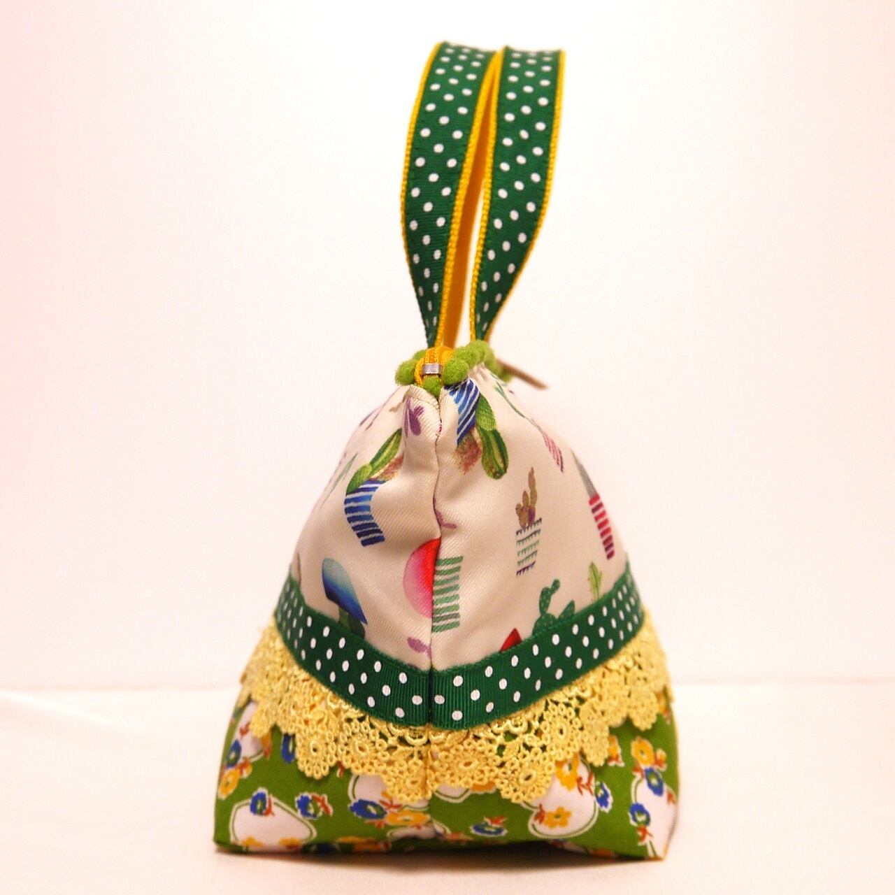 チュニック tunic 18159 ”サボテンハートのランチバッグ” 日本製 軽量 軽い バッグインバッグ マルチポーチ 手持ちバッグ 花柄レース ボンボンレース 可愛い リボン ドット 水玉 サボテン ハート プリント 楽しい 旅行 プレゼント 贈り物 ギフト お返しに 収納 誕生日 母の日 敬老の日 クリスマス サボテンハートのランチバッグ 18159 カラー:1.レッド 2.グリーン 価格:5060円