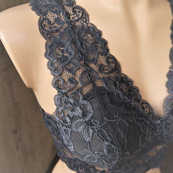 ワイドな肩レースのラウンドタイプの総ストレッチレースが美しいソフトブラ