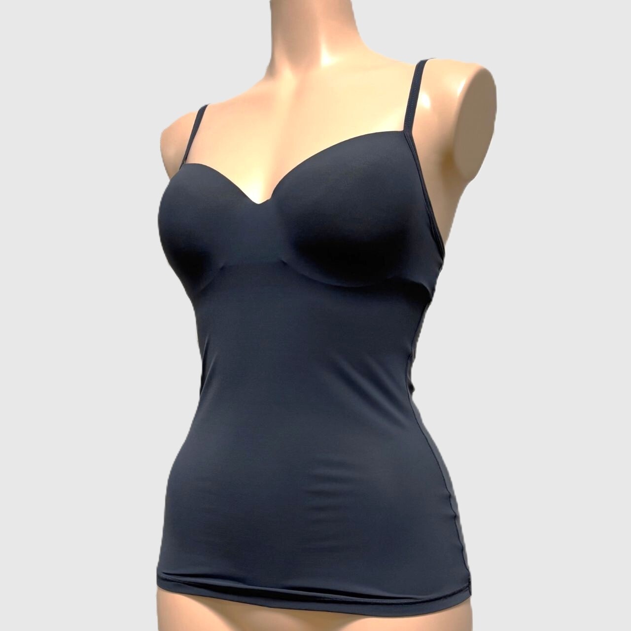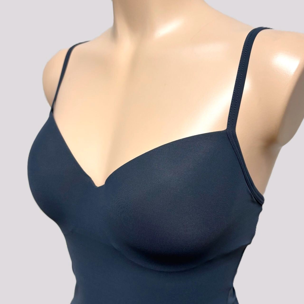 ブラとキャミソールが一体化した機能的なワイヤー入りブラキャミ。