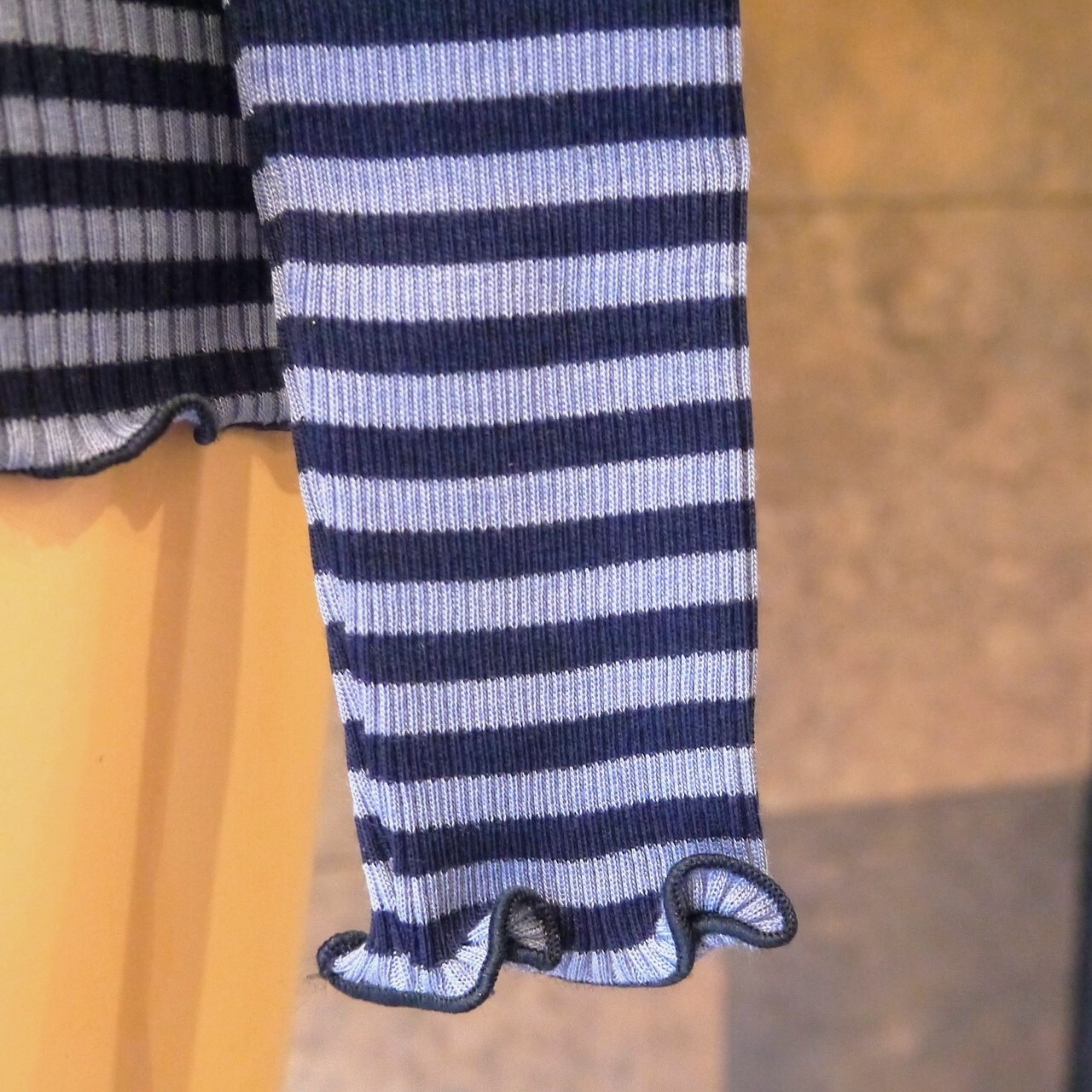 リブタイプで体に優しくフィット、温かな空気を逃がしません。