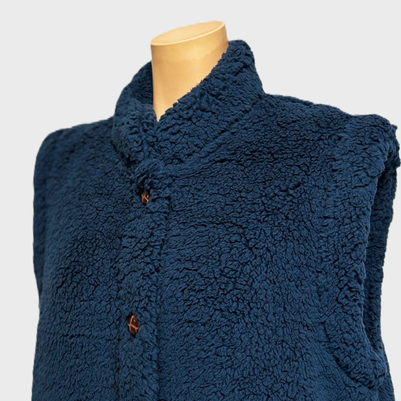 カナ CANAT フランス インポート 輸入ランジェリー フリース fleece ポーラーフリース 暖かい 軽い 保温性 通気性 寒さ対策 冷え防止 温熱 洗濯しやすい 可愛い クルミボタン 肌触りの良い 40代 50代 プレゼント ベスト ネイビー フリースポンチョ CA.JOY.VES サイズ:2サイズ(M) カラー:1.カメリア 2.ネイビー 価格:2530000円