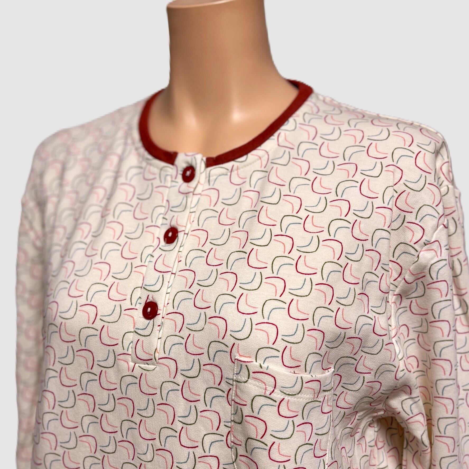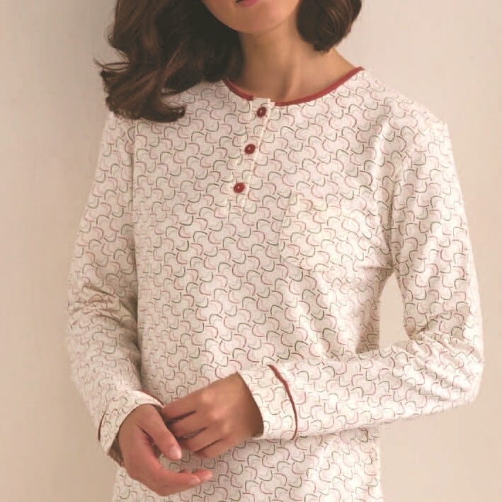 カナ CANAT フランス インポート 輸入ランジェリー コットン100% 天然素材 ジャージニット 高品質 伸縮性 柔らかい 起毛加工 寒さ対策 軽い 快適 リラックス 着心地重視 通気性 洗濯しやすい 睡眠 可愛い プリント 肌触りの良い 40代 50代 60代 プレゼント ナイティ 長袖パジャマ CA.JOY.PYK サイズ:2サイズ(M) カラー:トマトレッド/プリント 価格:31900円