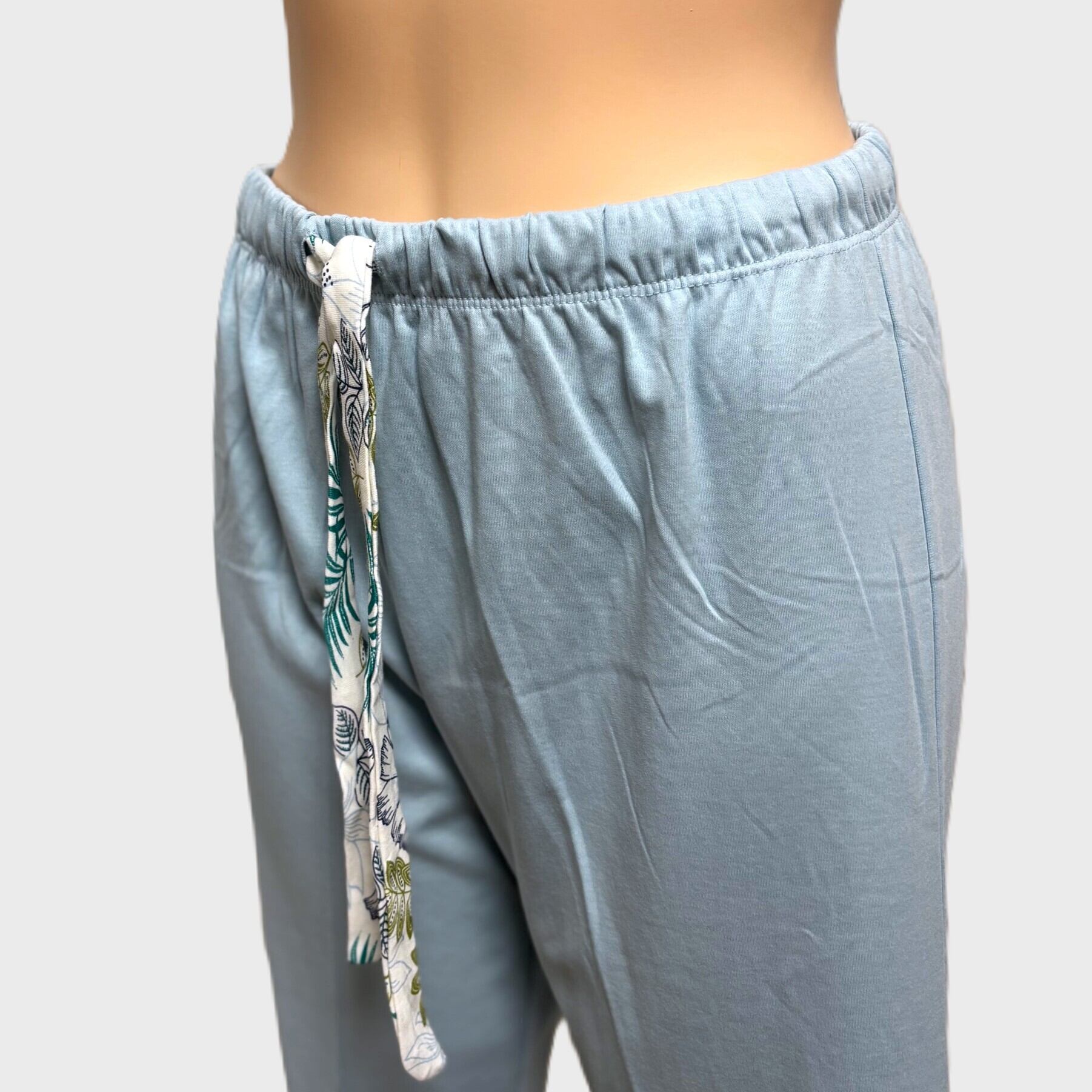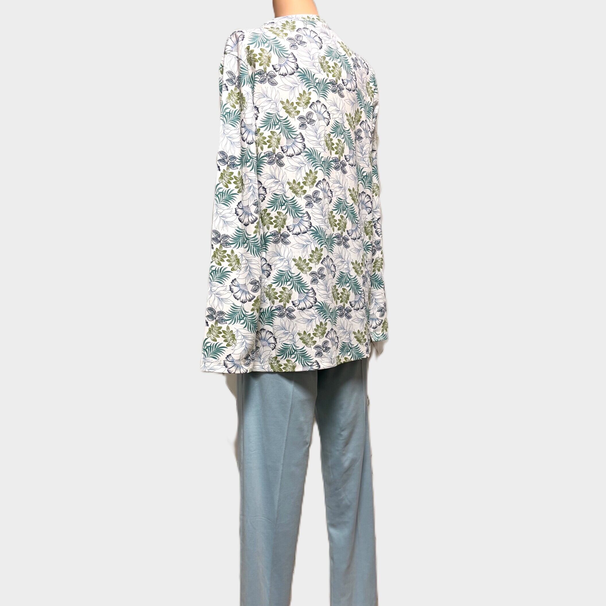 カナ CANAT フランス インポート 輸入ランジェリー コットン100% 天然素材 ジャージニット 高品質 伸縮性 柔らかい 軽い 快適 リラックス 着心地重視 通気性 洗濯しやすい 睡眠 リボン プリント 襟付き 肌触りの良い 40代 50代 60代 プレゼント ナイティ 長袖パジャマ CA.PANA.PY サイズ:2サイズ(M) カラー:ブルー/プリント 価格:31900円