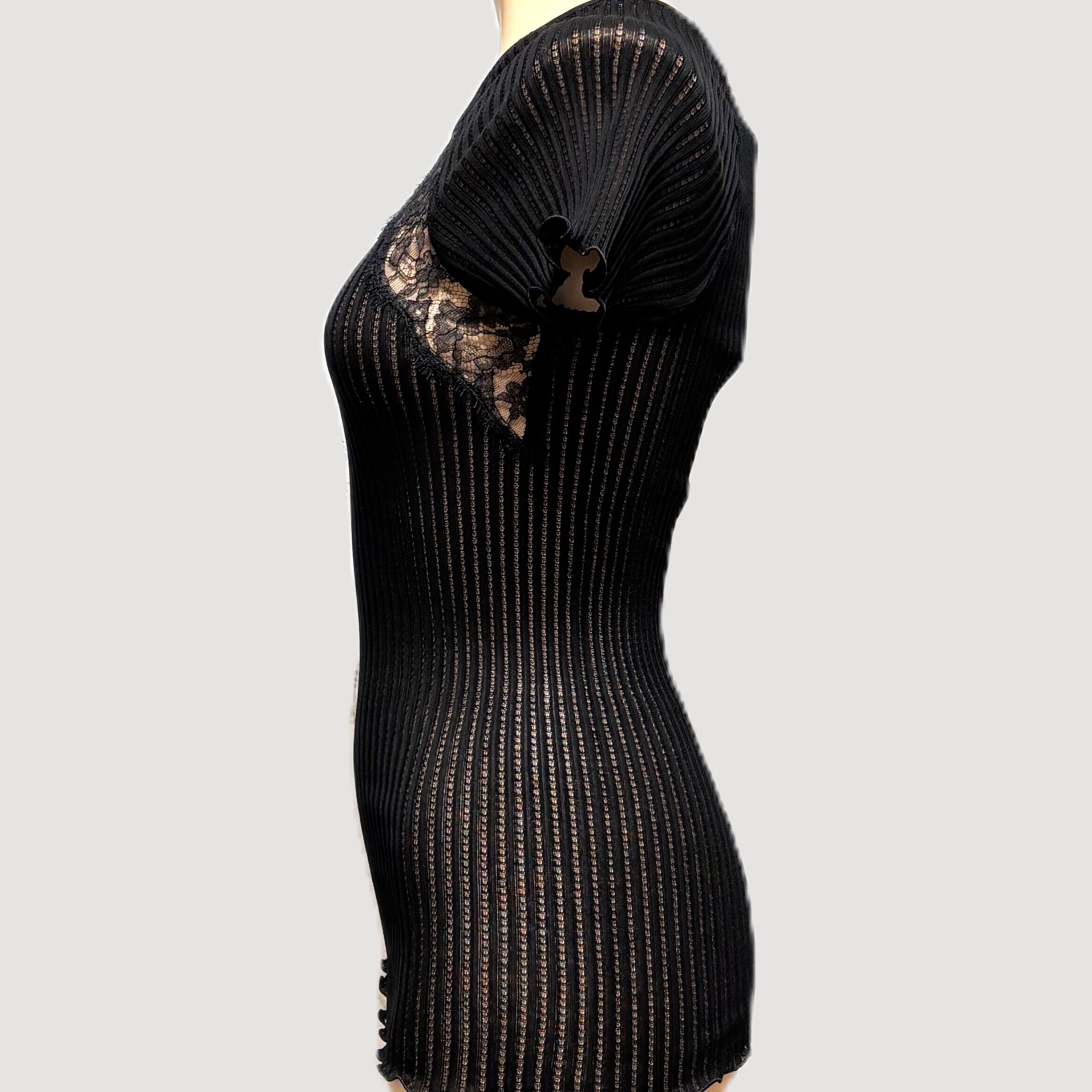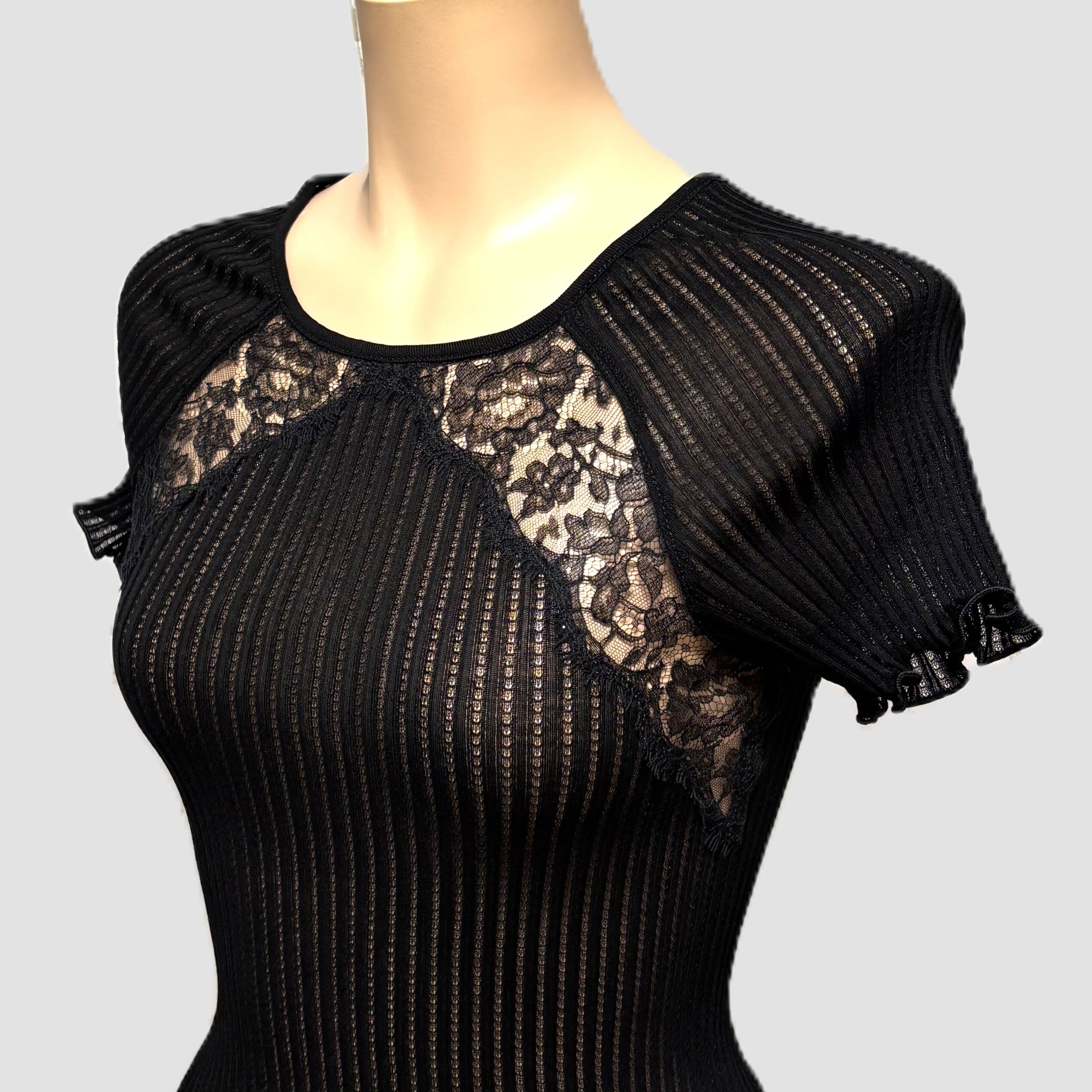 シアーなシャンテリーレースがお肌に浮かび上がり、黒なのに重く感じさせない。